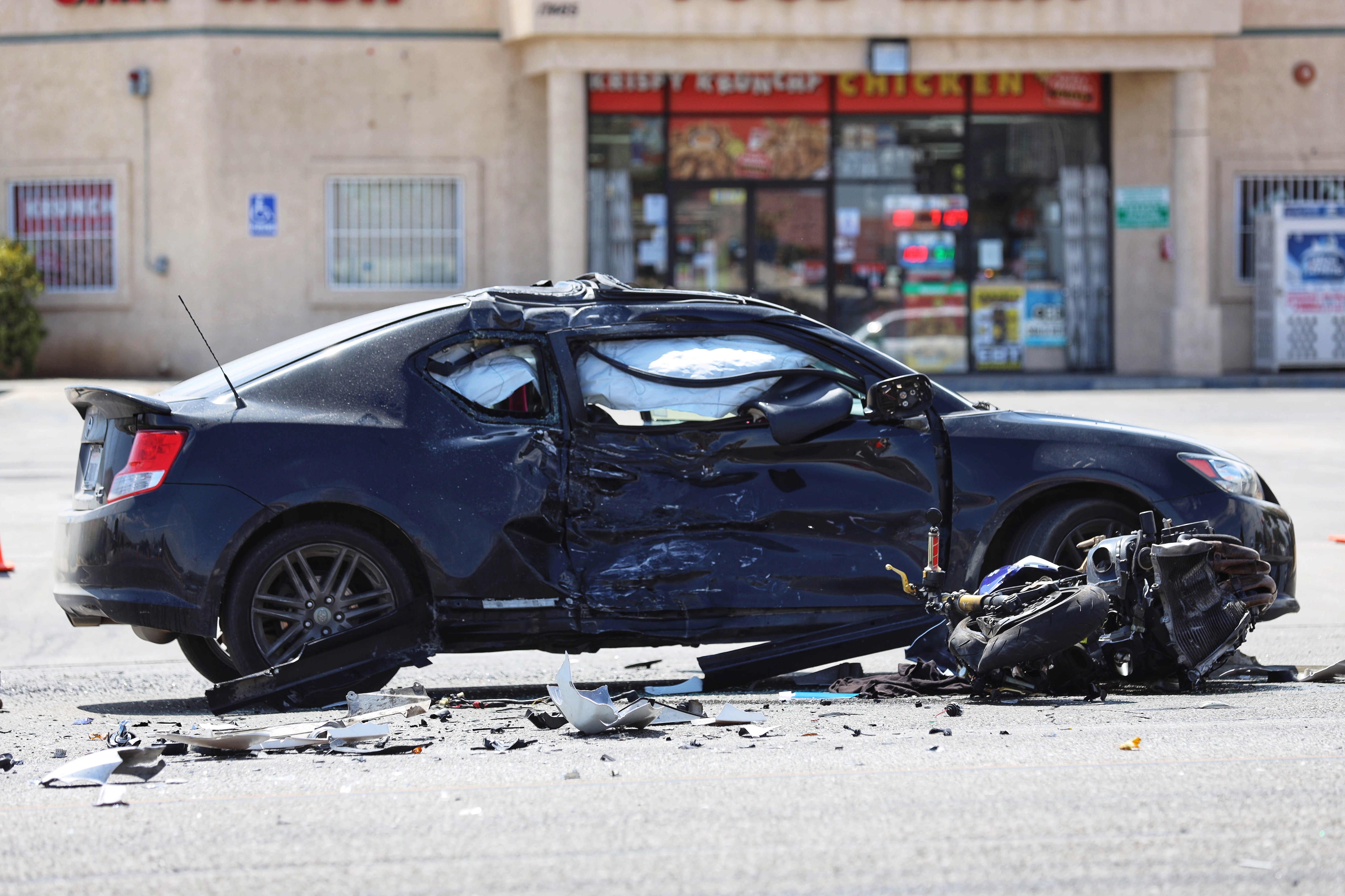 The crash was reported at the intersection of Amargosa Road and Key Pointe Drive just north of the Bakers Drive-Thru restaurant in Hesperia at about 1210 pm July 19th 2020. 20-year-old motorcyclist hit by Toyota Scion at BP gas station on Main Street. Apparently a black 2009 Harley-Davidson and a black 2018 KIA Forte were involved in the crash.